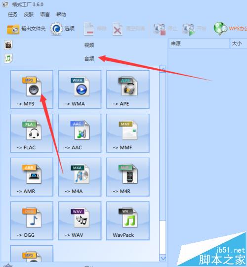 1、我們打開格式工廠軟件,然后選擇音頻,假如想要轉換成mp3格式的話,我們點擊選擇mp3,如圖所示