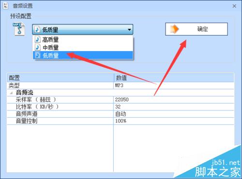 3、然后選擇低質量或者中質量,點擊確定開始轉換即可
