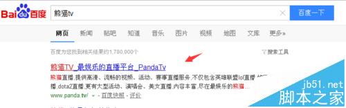 1、現在可以在瀏覽器上搜索熊貓tv,然后找到該平臺的地址連接,打開熊貓tv首頁。