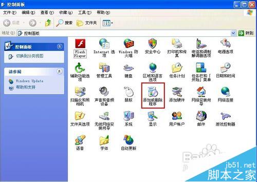 1、單擊“開始”菜單,單擊“控制面板”項(xiàng),在打開的控制面板窗口雙擊“添加或刪除程序”