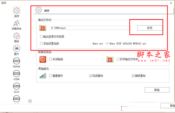 4、你也可以設置輸出位置,在選項對話框中==輸出文件夾==設置你自己想要輸出位置