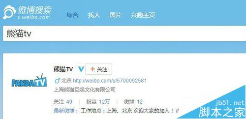 1、打開微博搜索,輸入“熊貓TV ”,點擊搜索