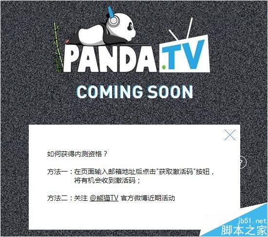首先,進入panda TV官網。輸入你的郵箱,點擊“獲取激活碼”可用激活碼分享。