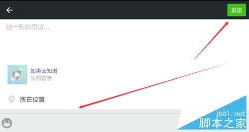 6、比如我們這里選擇分享到朋友圈,我們先點(diǎn)擊分享到朋友圈,即可彈出來(lái)一個(gè)歌曲分享朋友圈的確定界面,點(diǎn)擊發(fā)送,即成功分享歌曲。