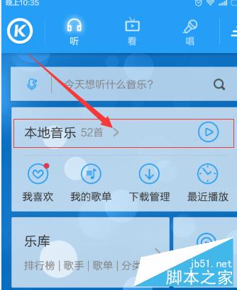 2、打開(kāi)進(jìn)入手機(jī)酷狗的主窗口后,這里我們?cè)谥鞔翱谡业?strong>并點(diǎn)選本地下載的歌曲,因?yàn)楸镜馗枨话闶俏覀冏约合矚g的,當(dāng)然大家也可以重新選擇下載。