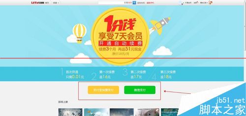 3、登入后,顯示“1分錢享受7天會員使用支付寶或微信支付;我選擇支付寶支付,登入支付寶帳號,成功支付了1分錢,然后就可以享受7天的會員了。