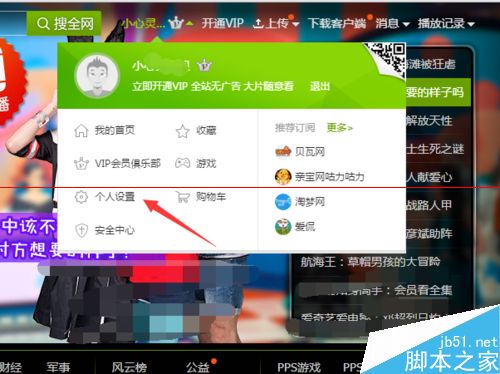 3、會彈出一個下拉的菜單,可以進行選擇,在彈出菜單中進行點擊”個人設置“的選項。