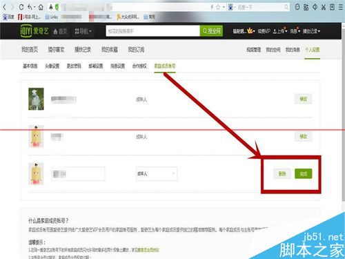 注意事項:家庭成員最多只能是五位哦,多了就不行,主賬號會員過期,其他子賬號會員也會過期。