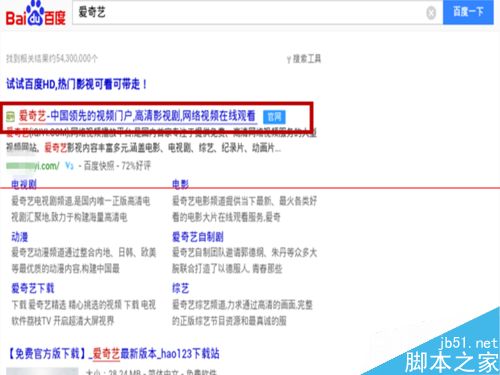 1、首先,在百度搜索“愛奇藝',彈出搜索界面,在界面上找到官網(wǎng),點擊進入。
