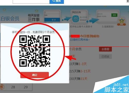 5、我們這邊點擊免費送2個月會員旁邊的去看看按鈕,會彈出一個窗口,上面有個二維碼,我們使用手機進行二維碼掃碼。通過掃碼二維碼我們可以獲取優酷的會員權限。