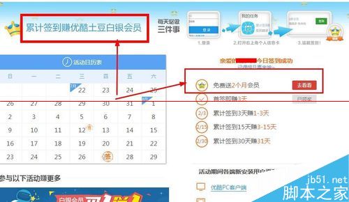 4、除了累積簽到換優酷白銀會員功能,還有個模塊是免費送2個月會員。