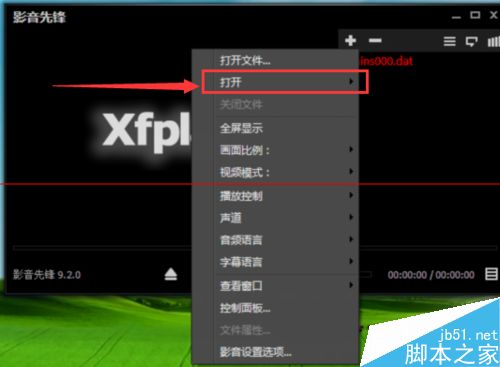 1、在桌面找到并打開影音先鋒,打開后進入影音先鋒播放界面后,我們在其播放界面上面右擊,這時會出現一個打開選項。