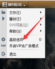 3、在我們點擊下更多小三角按鈕之后,出現很多選項設置項目,比如文件,播放,幫助,高級等等,我們選擇高級選項。