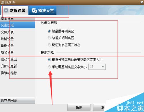 4、選擇之后接下來就是點擊打開,打開高級設置之后,出現我們常見的常規設置和播放設置。