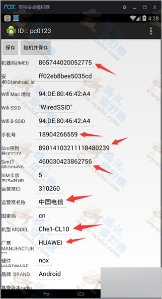 5、打開pc0123工具修改(IMEI、手機號、SIM序列號、IMSI、運營商、機型、廠商)這幾個地方。以下數據參考修改,比如手機號碼你可以自己找個身邊朋友的等。無限擼的話每次操作一遍后再用008神器清理數據!