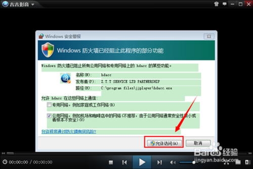 出現的吉吉影音插件一定要設置允許,并且勾選不再對此程序提醒警告