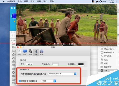 7、實在無法找到匹配的字幕時,還可以通過打開射手for mac的系統偏好,尋找強大的字幕君,點擊射手——系統偏好——勾選utf-8,勾選使用射手翻譯成中文,這就可以幫助你在浩瀚的全網搜索字幕。不得不感嘆射手 for Mac對于字幕搜索的強大功能。
