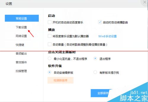 4、直接來到設(shè)置的頁面,在左側(cè)找到下載設(shè)置的選項(xiàng)卡
