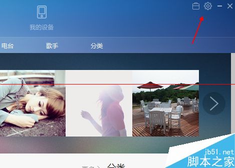 2、來到百度音樂的主頁面上來,在右側(cè)上邊找到一個(gè)小齒輪的圖標(biāo),這是系統(tǒng)設(shè)置的選項(xiàng)