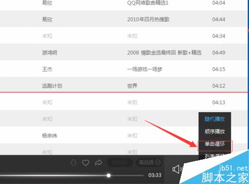 6、如果對音樂播放器的歌曲不進行單曲循環,可以對進行其它的設置,設置完成就不會單曲循環。