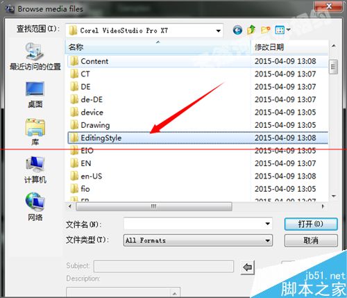 6、雙擊打開Corel VideoStudio Pro X8的文件后,在面板中的列表中找到EditingStyle的文件夾。