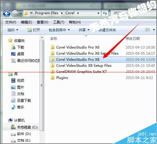 5、接著雙擊打開Corel的文件后,在彈出的面板中找到Corel VideoStudio Pro X8的文件夾。每個人安裝的版本不同,找到自己的軟件版本即可。