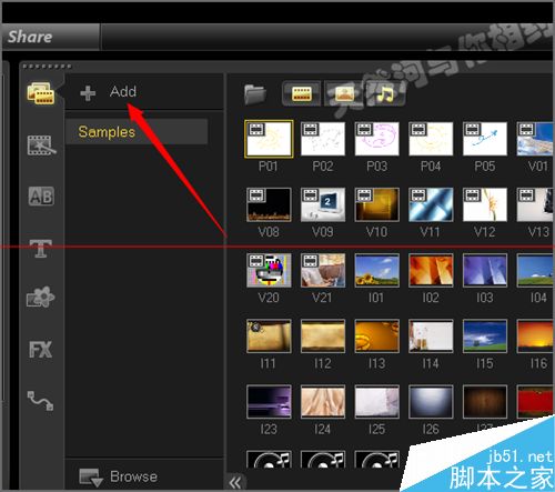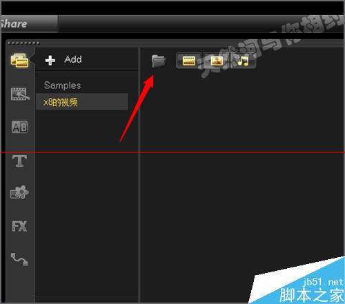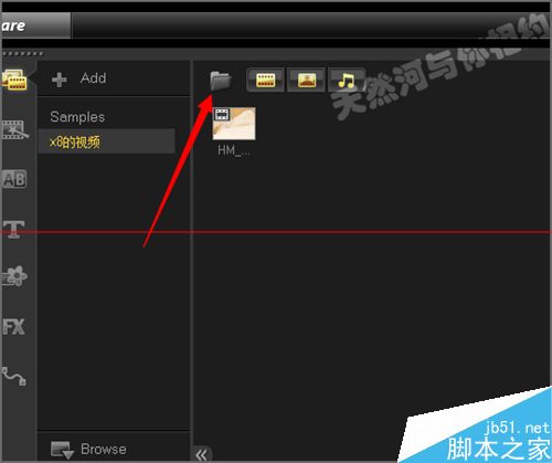 1、打開軟件之后,我們在它的會聲會影x6的軟件界面中可以看到它的時面是有很多的視頻和圖片用音樂文件的。如果我們不想把所添加的視頻放到它的界面中的話,可以點擊添加新建一個視頻文件夾。