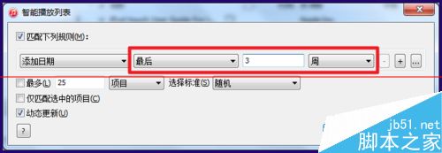7、如下圖所示,顯示最近3周添加的文件,過了這段時(shí)間的文件就不會(huì)在這個(gè)播放列表內(nèi)了,還可以設(shè)置成顯示某個(gè)日期后添加的文件等