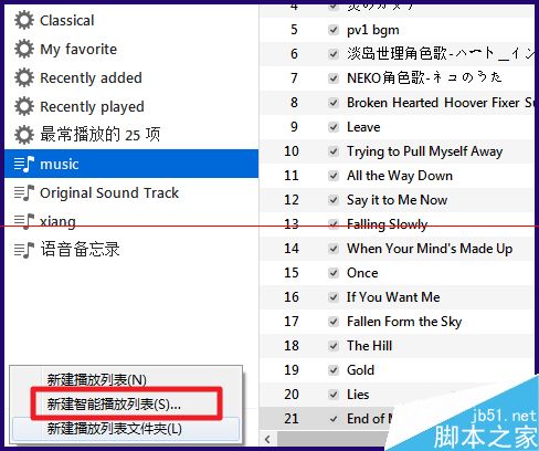 3、選擇【新建智能播放列表】