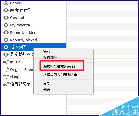 9、可能還有一個(gè)問題,就是所有在這段時(shí)間添加的文件(比如視頻、書籍)都會(huì)顯示在這個(gè)列表內(nèi),如果只要顯示音樂,右擊播放列表,選擇【編輯智能播放列表】,再添加一個(gè)規(guī)則