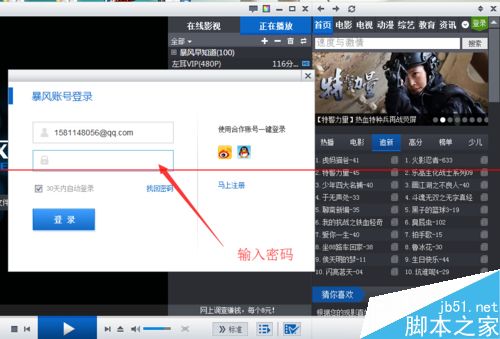 3、注冊(cè)成功后點(diǎn)擊“登陸”,在左上角輸入你剛剛注冊(cè)的賬號(hào)和密碼,就可以進(jìn)入屬于你自己的暴風(fēng)。