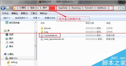 5、發(fā)現(xiàn)沒有CachePath.ini文件的很好辦,正在C:/Users/XXXX/AppData/Roaming/Tencent/QQMusic下創(chuàng)建一個文本文檔,更名為CachePath.ini(這里要注意文件的文件可擴(kuò)展名*.ini),打開輸入以下內(nèi)容保存即可。