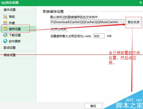 3、點(diǎn)擊緩存目錄設(shè)置,并設(shè)置好自己想放置的文件夾。(這時設(shè)置好了,但是有很多的下次運(yùn)行QQMusic時會發(fā)現(xiàn)緩存設(shè)置的地址又變回某盤符的根目錄去了(就是這Bug)。-----無效的請繼續(xù)往下看。)