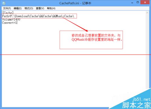 2、Path=F:/Download/Cache/QQCache/QQMusicCache/中Path=后面的為自己想放置的文件夾位置。