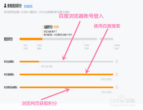 積分獲取:1,使用百度瀏覽器。2,使用百度搜索。3,但進入其他網頁也能獲取積分哦(注意:要是你用瀏覽器不登賬號,不僅不會給你積分,積分還會一天天消失的)