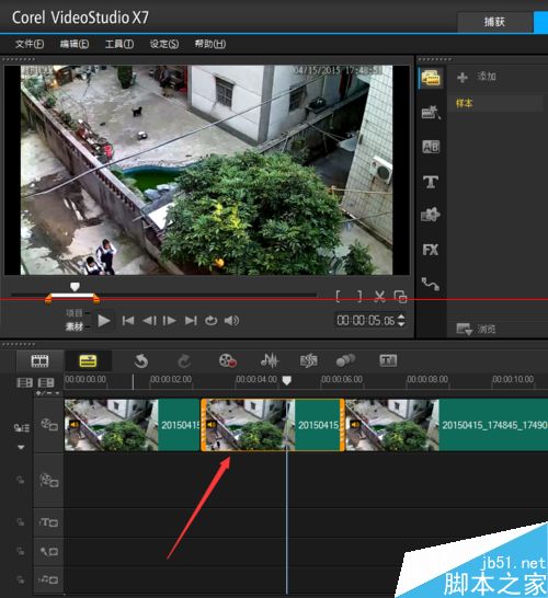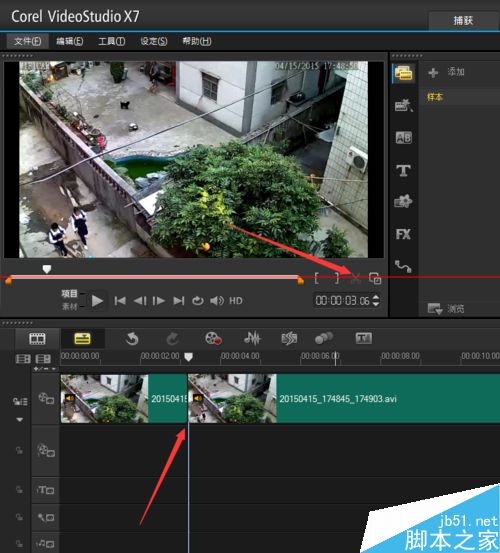 8、如果我們只剪輯素材,那么點擊素材開始播放,播放以后旁邊的一個剪刀圖形會呈白色,我們就可以進行操作,