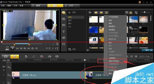 5、選中剪切出來的部分,點鼠標右鍵,選中“速度/時間流逝...”