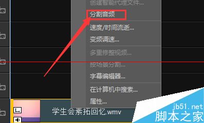 第二步:在視頻上右鍵單擊,“分割音頻”。