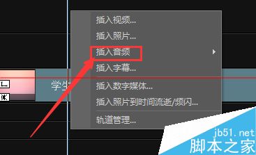 第五步:右鍵空軌道,選擇“插入音頻”,選擇自己喜歡的音樂插入。