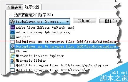 6、選擇“百度影音”為自定義程序。如圖所示。