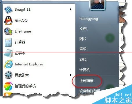 2、在“開始”菜單中找到“控制面板”,如圖所示。