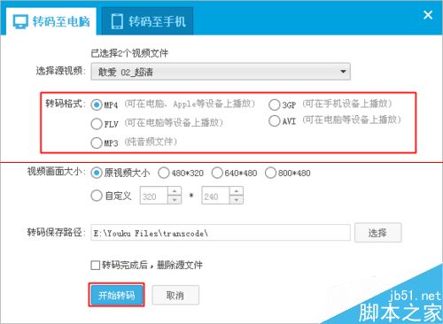 2、此時會進入轉碼格式頁面,操作方法如上所同,選擇轉碼格式之后,點擊“開始轉碼”即可。下載好的視頻,轉碼就很快了。