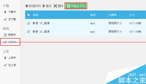 5、好啦!待下載完畢和自動轉碼完成之后,我們再打開下載管理頁面,進入“已轉碼”選項,將視頻傳輸到手機即可。
