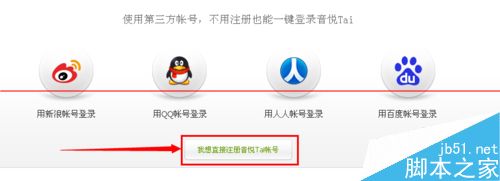 3、選擇“我想直接注冊音樂Tai賬號”,如果不想注冊,使用圖標上面的幾種登陸方式也可以。