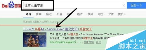 3、打開瀏覽器,在百度里搜索“冰雪女王字幕”,然后點(diǎn)擊搜索結(jié)果,并進(jìn)去下載好字幕。