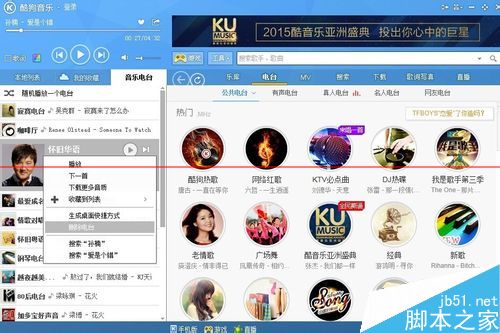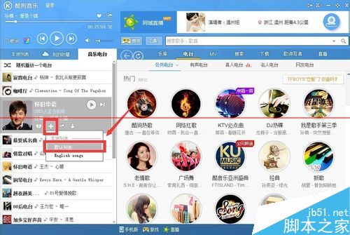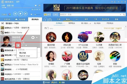 3、在正在播放的電臺中有一個加號,指的是收藏到列表。我們點擊這個加號,就會跳出下拉菜單。