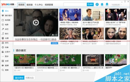 1.1首先打開優酷軟件,軟件主界面,如圖