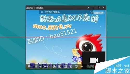 5、視頻接通后將顯示虛擬視頻de內容,下圖中ni會看到視頻圖像是反de,這個并不影響使用,從對方de角度看就正常了。