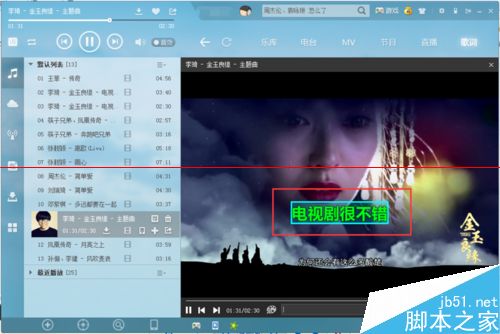 6、然后點擊【發(fā)送】按鈕,輸入的內容即可出現在MV播放窗口底端,如下圖所示。