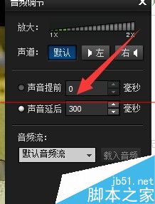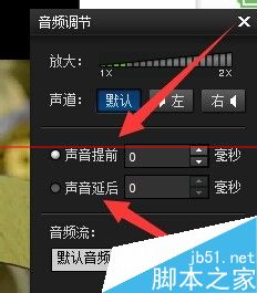 5、如果先出聲,后出畫面,點擊聲音延后,此時點擊右放的兩個小箭頭調整延后的時間